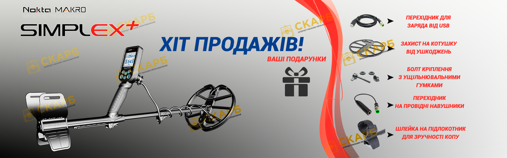 Придбати металошукач Nokta Simplex+ за найнижчою ціною Ви можете у нашому інтернет магазині Скарб. Безкоштовна доставка, оплата при отриманні та консультації щодо роботи Вам гарантовані. Купуючи прилад у нашому магазині, Ви отримуєте оригінальний металошукач, який офіційно ввезений в Україну і має гарантійне обслуговування на сервісному центрі.